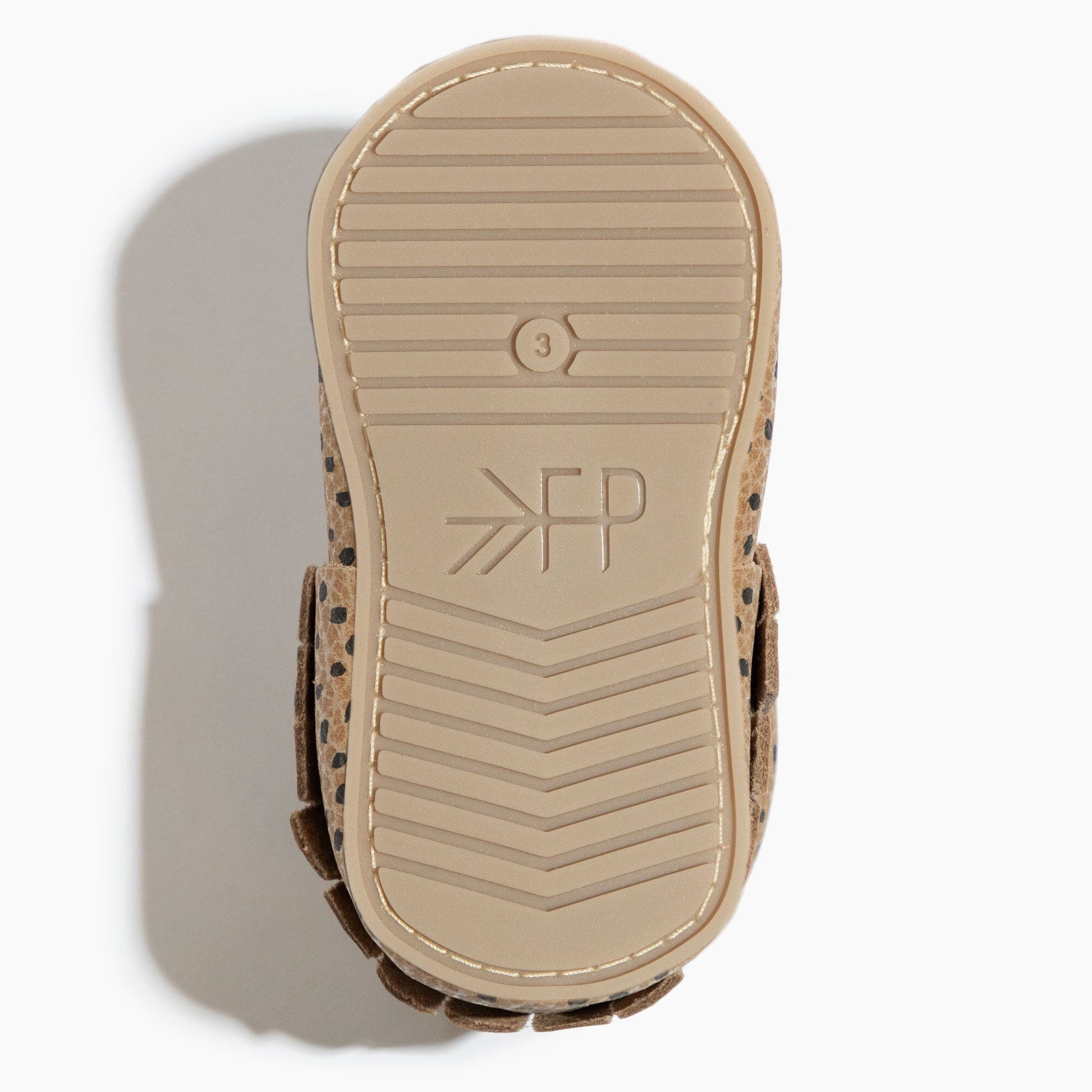 Made by hand from premium leather, these shoes feature a classic Moccasin design with fringe detail. With an elasticized ankle for easy wear, they guarantee gentle support and healthy foot development for your little one.