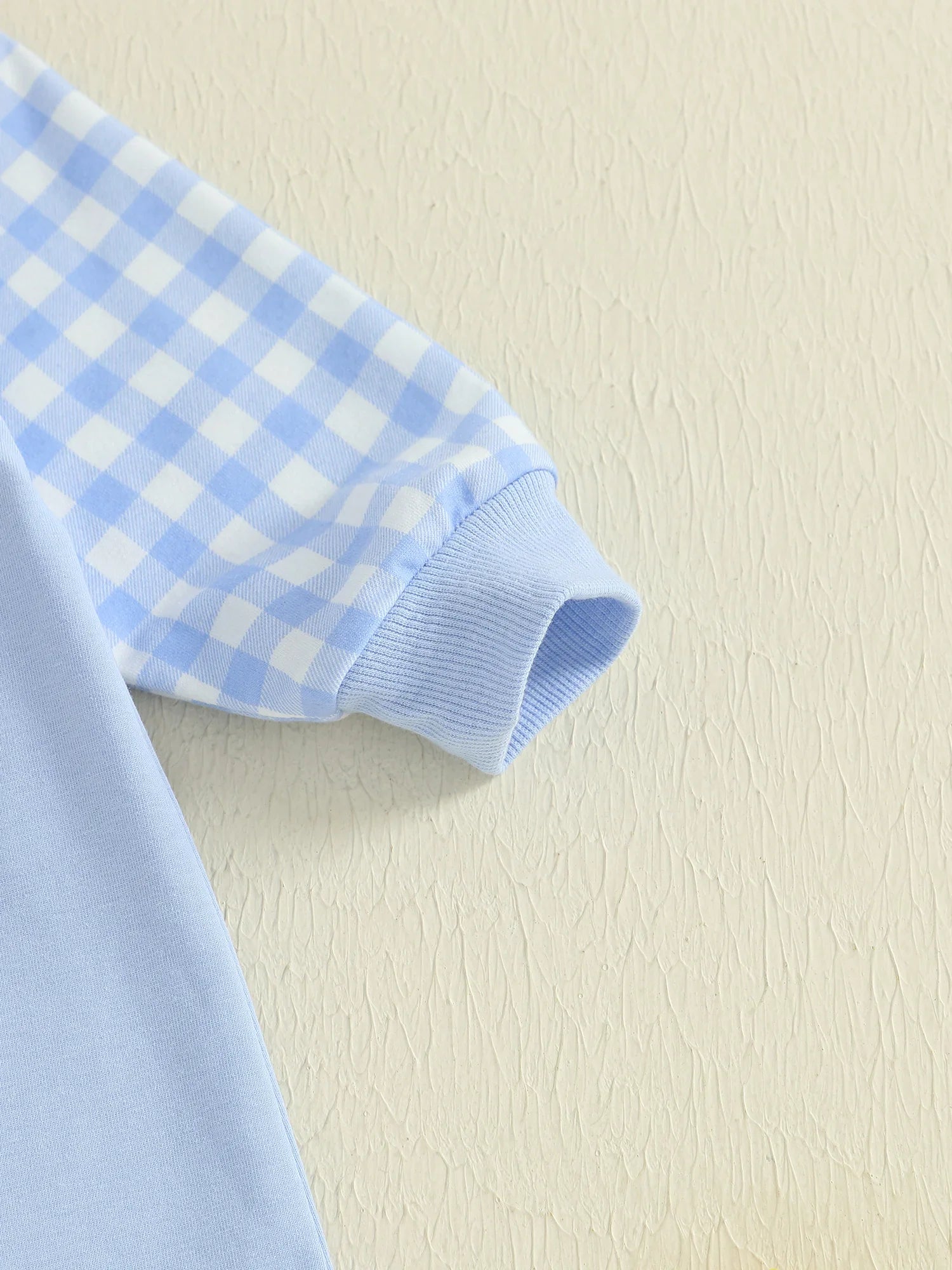 Baby Toddler Boy Lil Brother Fall Romper Plaid Print Letter Embroidery Long Sleeve Round Neck Full Length Jumpsuit