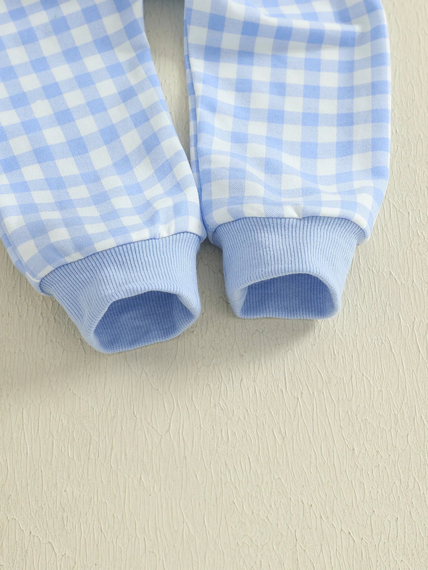 Baby Toddler Boys 2Pcs Fall Outfit Letter Embroidery Big Brother Long Sleeve Top and Elastic Plaid Pants Clothes