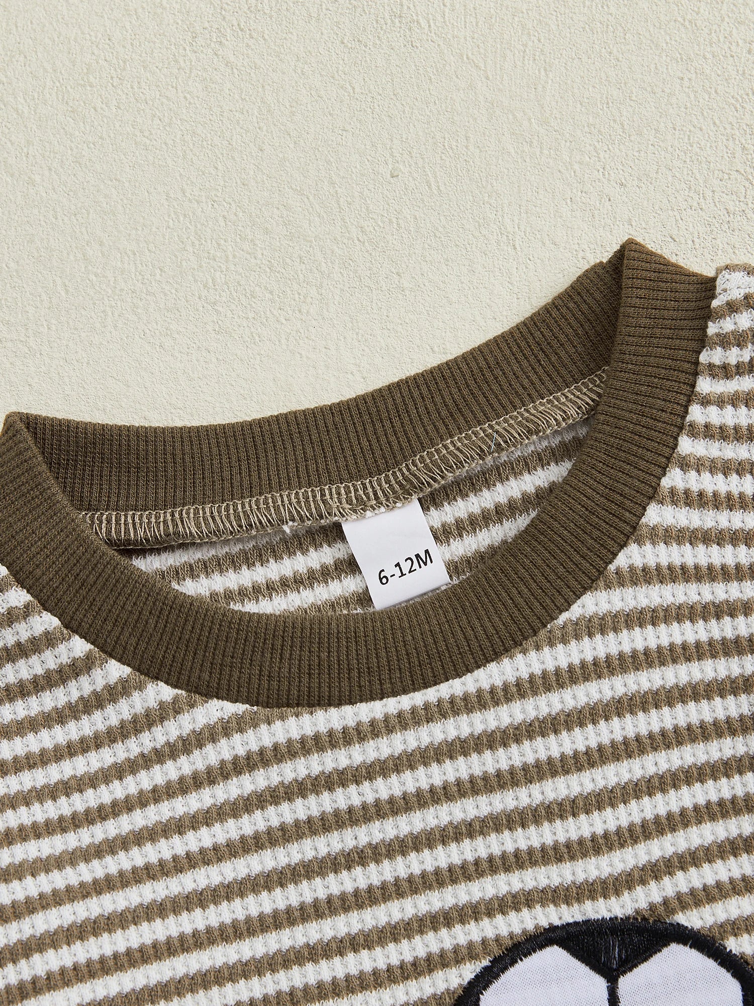 Baby Toddler Boys 2Pcs Fall Outfit Rugby Embroidery Striped Long Sleeve Top and Elastic Pants Clothes Set
