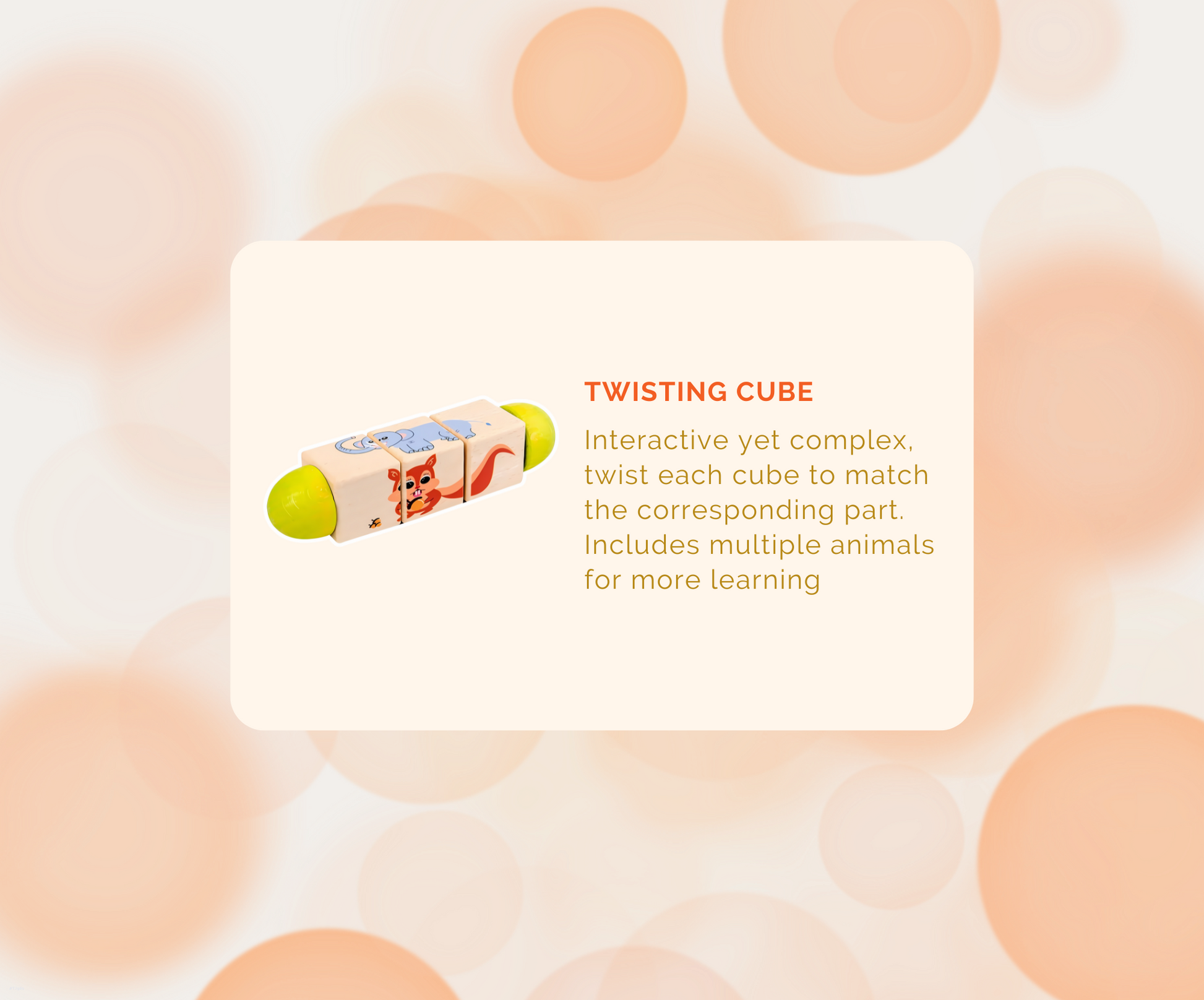 Educational box for babies aged 25-27 months, full of developmental items to aid baby in their cognitive growth. Each box comes with 6 products, all products are made from sustainable and safe material. These boxes encourage open ended play while helping to strength fine motor skills.