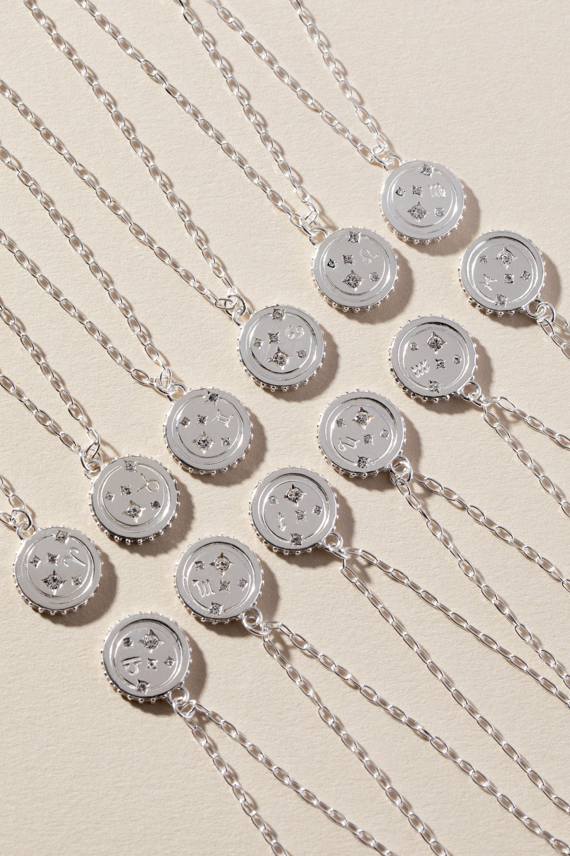 Sagittarius is dynamic and spontaneous. This Sagittarius pendant necklace celebrates this fire sign with a double-sided engraved charm: one side has Sagittarius signs, and the other has the full zodiac wheel, both with crystal accents. Wear it and remember you were written in the stars.