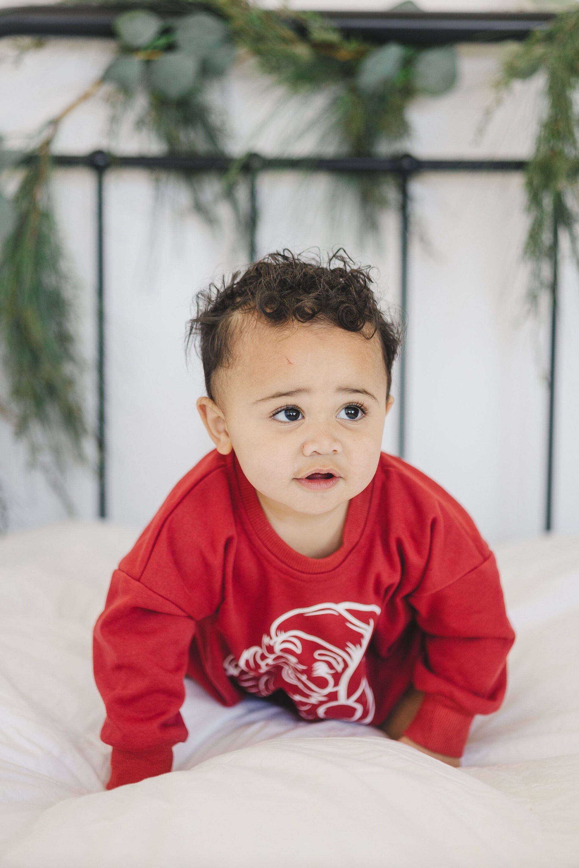 Vintage Santa graphic oversized sweatshirt romper with snaps at crotch. Lightweight terry material.
